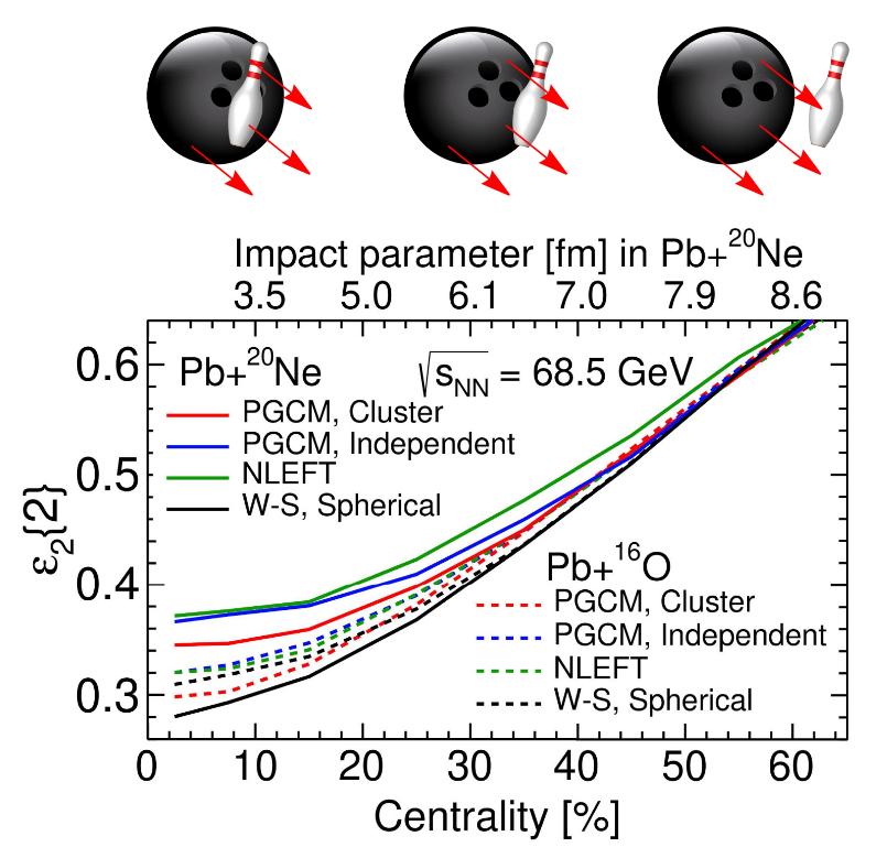 Le dispositif SMOG2 du détecteur LHCb permet d’étudier des collisions ion–ion en cible fixe à des énergies relativistes (~100 GeV). Des simulations hydrodynamiques 3+1D, basées sur des calculs ab initio de la structure des noyaux ¹⁶O et ²⁰Ne, prédisent que la forme déformée du ²⁰Ne amplifie fortement le flux elliptique (v₂) dans les collisions Pb+Ne, comparé au cas Pb+O. Cette sensibilité à la géométrie nucléaire montre que SMOG2 peut servir d’outil unique pour sonder expérimentalement la forme des noyaux et étudier la formation du plasma de quarks et de gluons dans un régime de collision inédit. L’article associé à ces travaux est disponible ici: G. Giacalone et al., Phys. Rev. Lett. 134 (2025)